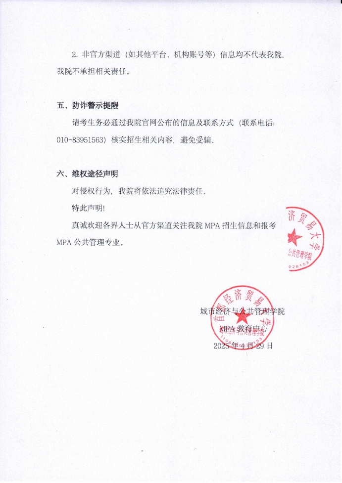 近期发现有不良机构冒用我校MPA名义虚假招生的信息,为维护广大考生合法权益,规范招生秩序,82看球直播 现就相关事宜声明如下: