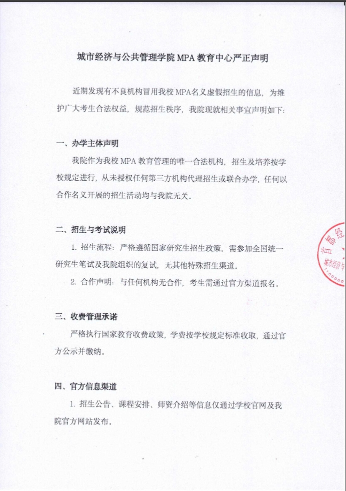 近期发现有不良机构冒用我校MPA名义虚假招生的信息,为维护广大考生合法权益,规范招生秩序,82看球直播 现就相关事宜声明如下:
