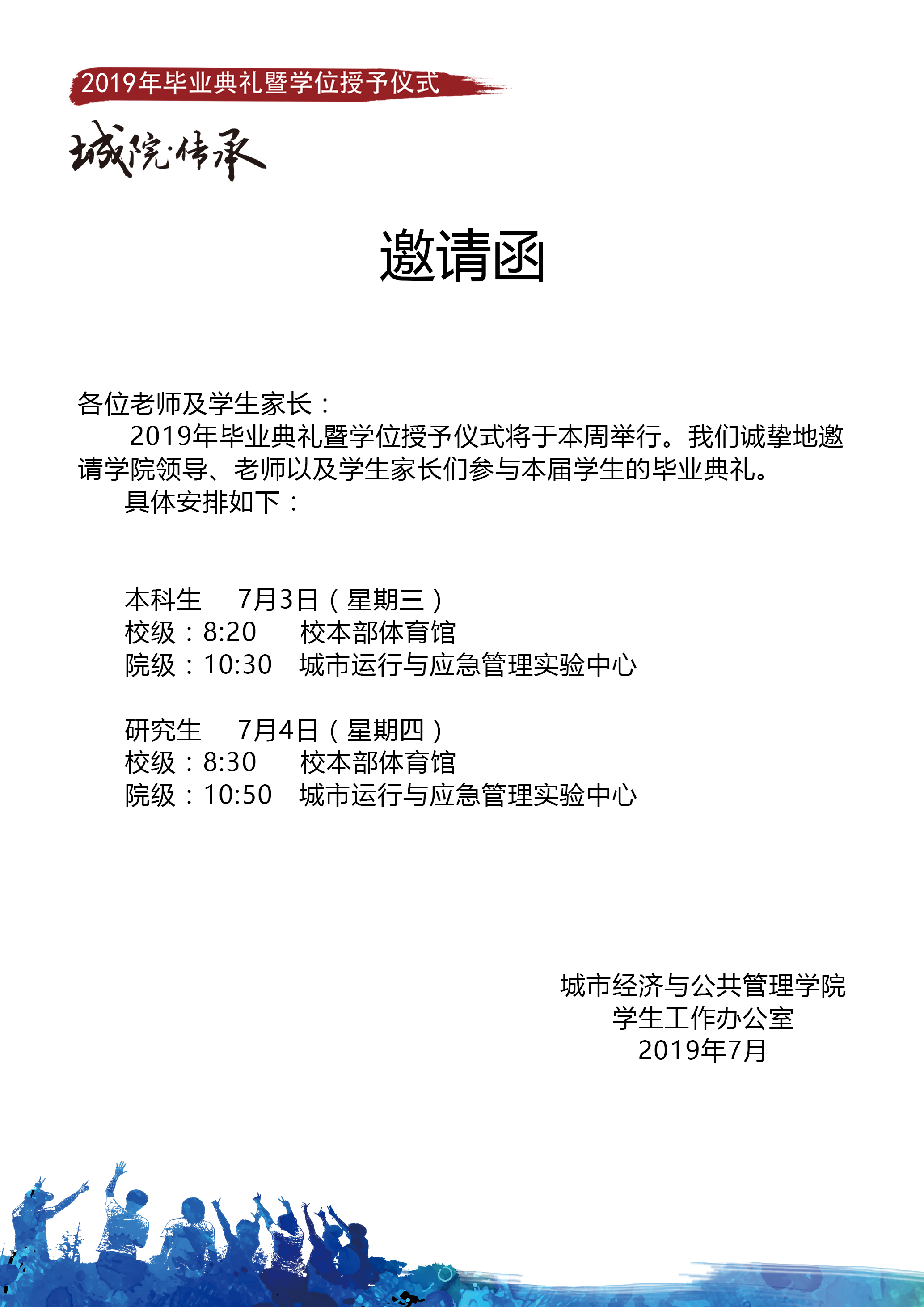 2019年学生毕业典礼暨学位授予仪式将于本周举行。我们诚挚地邀请82看球直播 领导、老师以及学生家长们参与本届学生的毕业典礼。