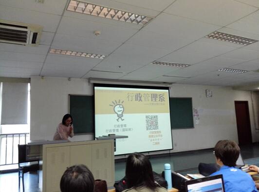 专业宣讲次序抽签决定。首先宣讲的系是行政管理系。该系王蕾副教授就行政管理专业的发展历程、师资力量、课程设置、培养特色、就业深造等方面就行了详细介绍,两名毕业生代表分别介绍了专业学习的经验和收获。