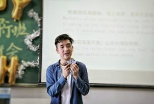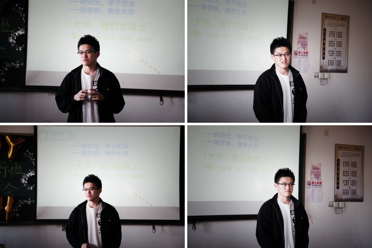 在老师和学长学姐的关怀和鼓励下,16级的新生刘嘉兴同学也有一肚子心里话要说,真实淳朴的他给大家带来了许多的欢乐。他坦率地讲述了进入大学校园以来短短时间内的心路历程变化,也毫无保留地向大家分享了大学学习生活中的丝丝疑惑,更是代表全体新生向大家表达了努力学习的决心。他的话句句发自肺腑,字字皆是真情,娓娓道来,也可谓是吐露了大家的心声。