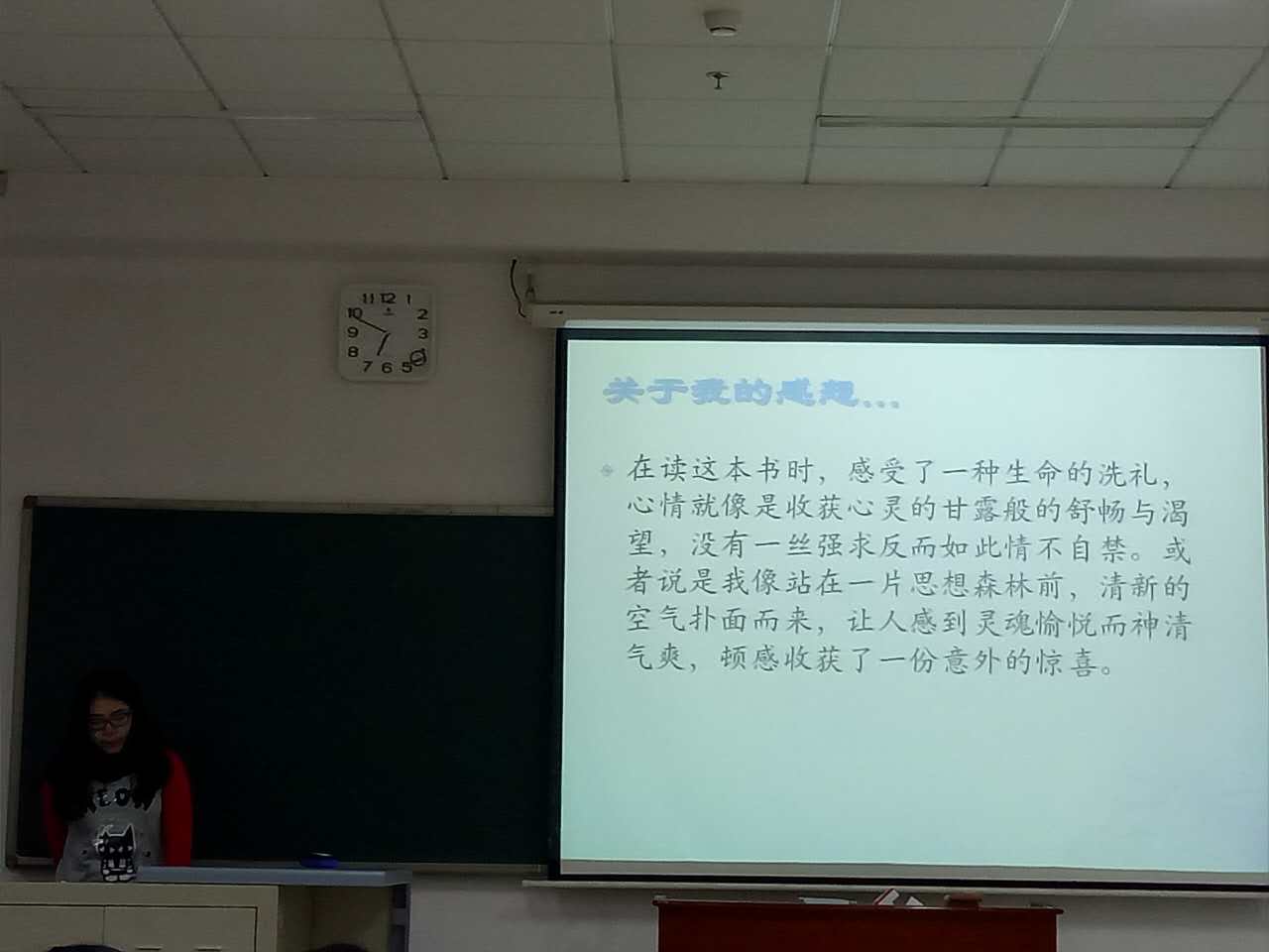 整个活动有序地进行着,台上的人讲的激情澎湃,台下的同学听的目不转睛。读书是一件严肃的事,态度决定一切,以严谨的态度去阅读,书也会回馈给你最好的。书籍也是人类进步的阶梯,读书能为你排忧解难,书香能将你引入名山大川,使你近可于历史长河漫步,流连忘返,书籍的交流分享更能领略你从不同的角度去认知知识去体验书中的精彩世界。读书会的分享正是引领通往不同世界的百叶窗,我们期待下一周百叶窗的开启,期待下一次未知旅途的起航。