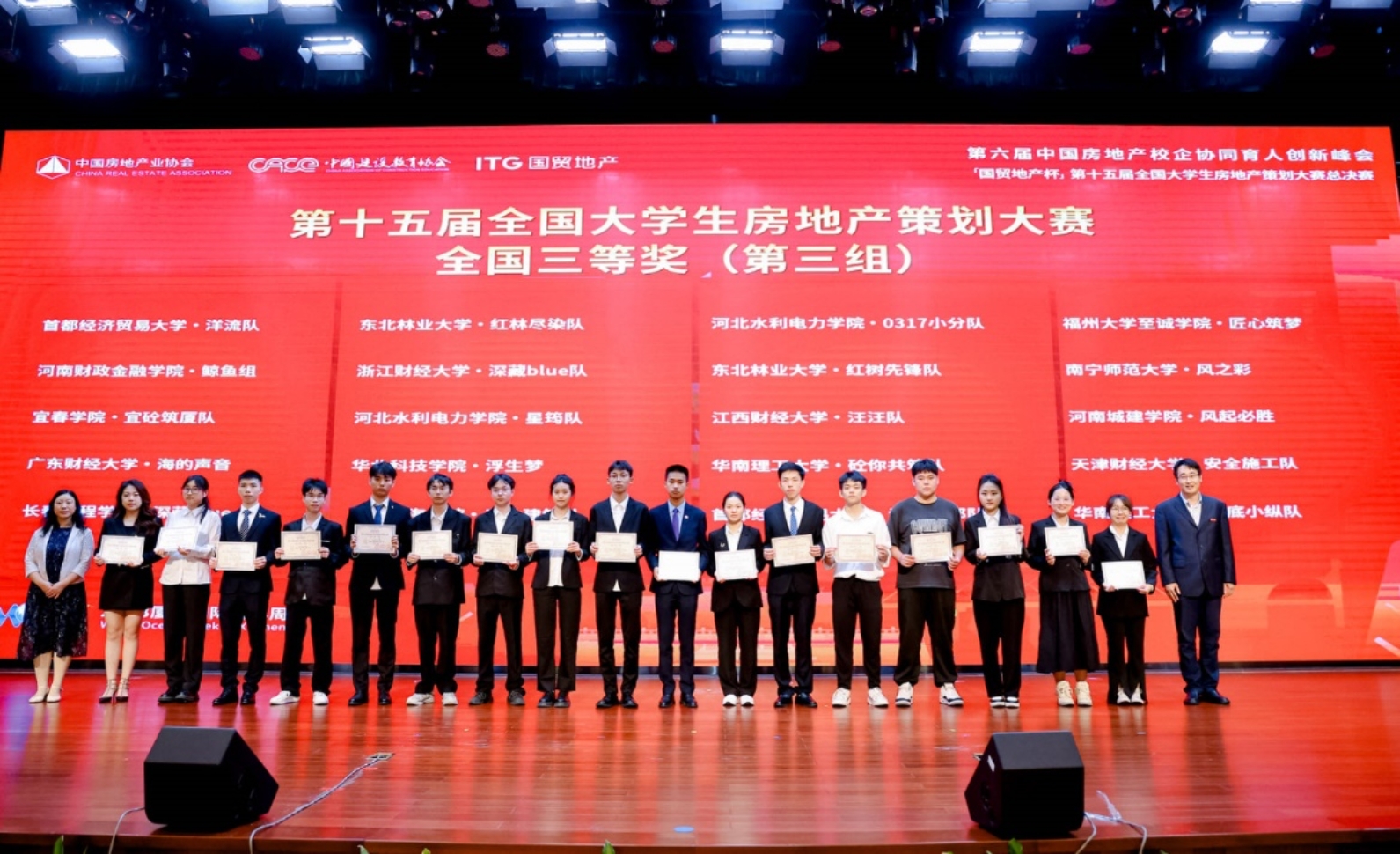 2023年11月12日,“国贸地产杯第十五届全国大学生房地产策划大赛”总决赛在华侨大学厦门校区圆满落幕。大赛由中国房地产业协会指导,中国建设教育协会主办。大赛旨在促进产教融合、校企合作,创新高校人才培养机制,促进教育链、人才链与产业链、创新链有机衔接,推动房地产行业“产、学、研、用 ”协同发展,提升大学生创新实践能力。大赛5月份开始启动,吸引了12000名大学生报名,经过初赛、复赛层层选拔,最终有120所高校、170支队伍参加了总决赛。我校参赛团队从市场调研、项目定位,到项目规划、产品设计、经济测算、营销策略、项目运营、物业服务等多个角度为赛题地块设计了全流程的策划方案,得到了现场评委的一致好评,最终获得了1个全国一等奖、2个全国三等奖,若干华北区一等奖、二等奖的好成绩。部分获奖同学还通过培训获得了“房地产策划员”证书。