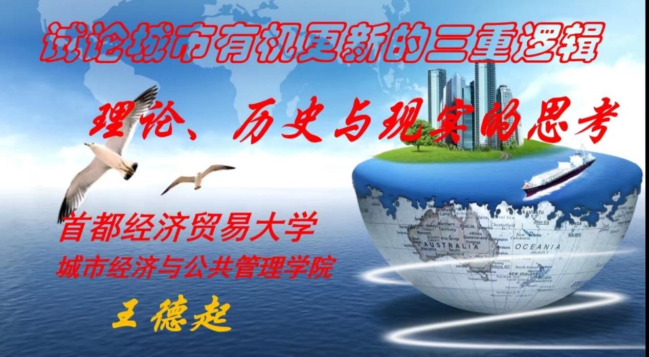 7月16日晚,城市经济管理系王德起老师为我校19级、20级城市经济管理本科班同学做了系列学术活动的最后一场讲座。王老师以“城市有机更新的三重逻辑(理论、历史与现实的思考)”为主题,从缘起:“人-事-物”系统必然、逻辑:城市更新的基本方法论、策略:强优势补短板创新发展、践行:精明化策略准确化笃行“四部分展开了讲解。 王老师详细的讲解了何为“逻辑”、逻辑关系、逻辑特点等内容,提出城市更新逻辑的源头,并通过城市发展的演变规律、城市居民的需求层次体系、动物的代谢率以及心...