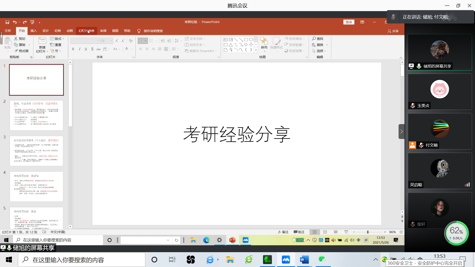2021年5月26日中午,由82看球直播 学业发展中心举办的城市青年学业发展能力提升讲座之“关于考研那些事”的讲座,在腾讯会议室如期举行。本场讲座由今年考研上岸的王雅艺、储徐和吴明桓进行主讲,围绕时间规划、收集资料、专业选择等内容与同学们进行分享,共30余位学生参加本次分享会。 首先,由王雅艺进行了分享。王雅艺主要从“如何获得考研的相关信息”、“如何准备考研科目”、“如何调整心态”三个方面进行了分享。她以自己的备考经验为例,为即将准备考研的同学们在考研的准备、科目的如何选择参考...